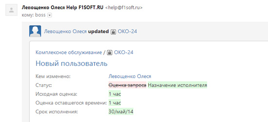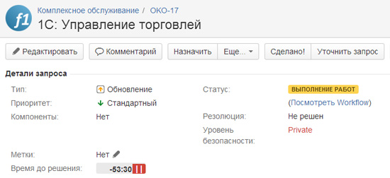 Готово!Заполнив форму, нажмите "Создать" и вернитесь в главное меню. Ваш запрос будет в ту же секунду доставлен специалистам Ф1СОФТ.РУ, которые сразу приступят к его решению.Отслеживайте состояние, комментируйте предлагаемые варианты, контролируйте результаты, оценивайте качество нашей работы. |