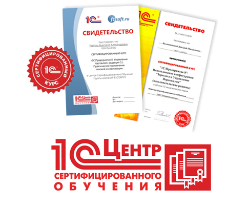 В официальном Центре сертифицированного обучения (ЦСО), каждый слушатель получает именное свидетельство от фирмы 1С. Свидетельство выдается в последний день обучения и входит в состав методической документации.