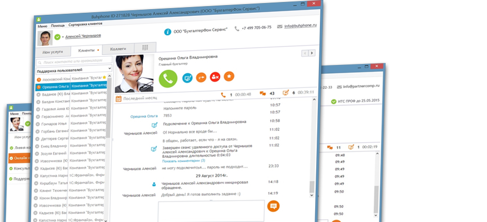 Чат. Звонки. Удаленный рабочий стол. Интернет-сопровождение в момент обращения.