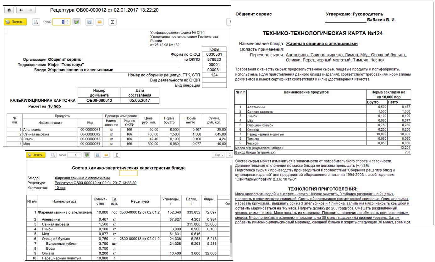 - составление технологических карт (калькуляций), в которых можно учитывать предварительную проработку «фирменных» блюд заведения;