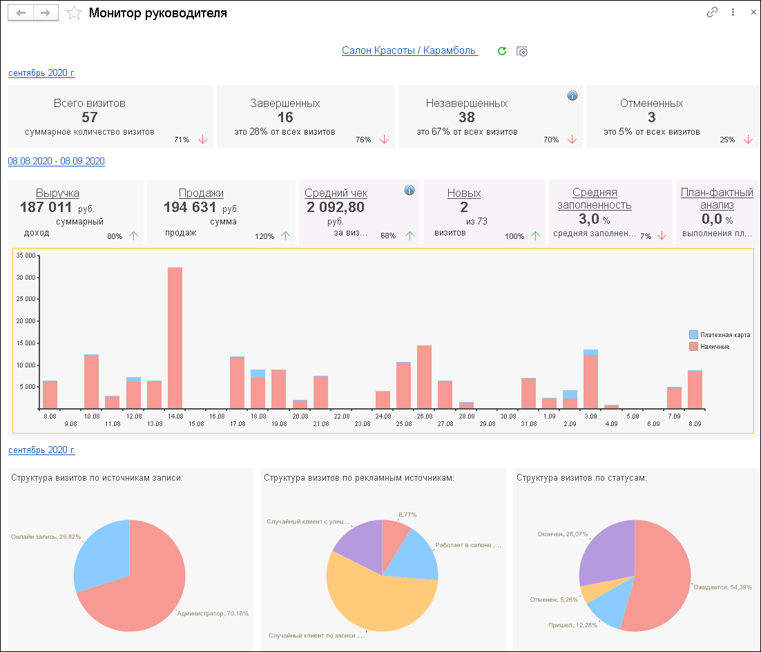 - Отчеты посещения клиентами салона красоты, которые фиксируются в программе автоматически.