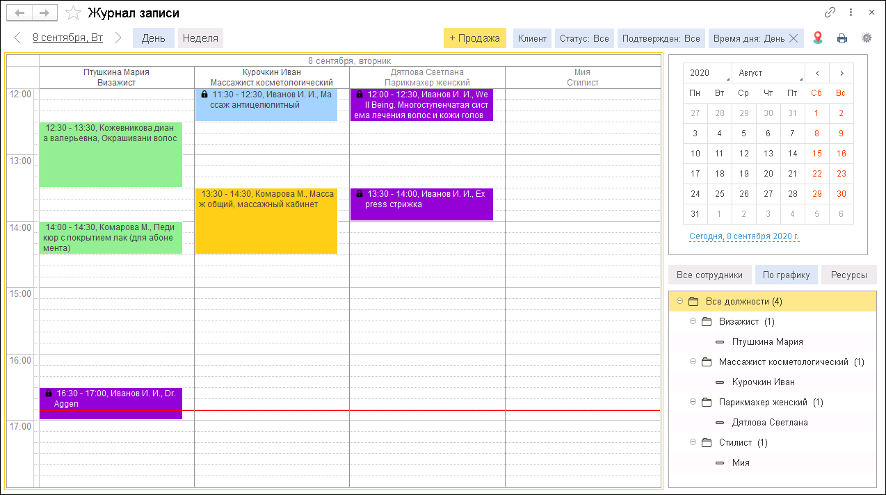 Возможности 1С: Предприятие 8 Салон красоты 8