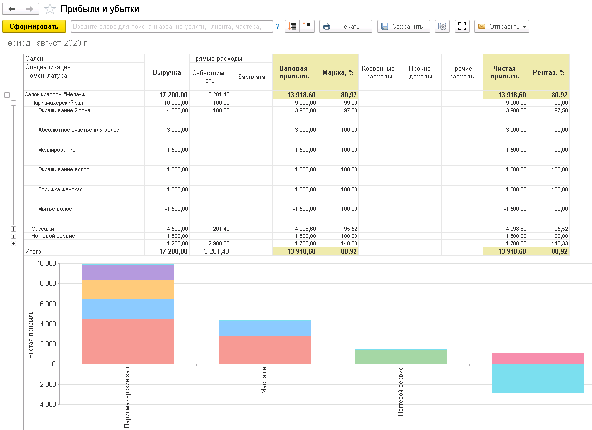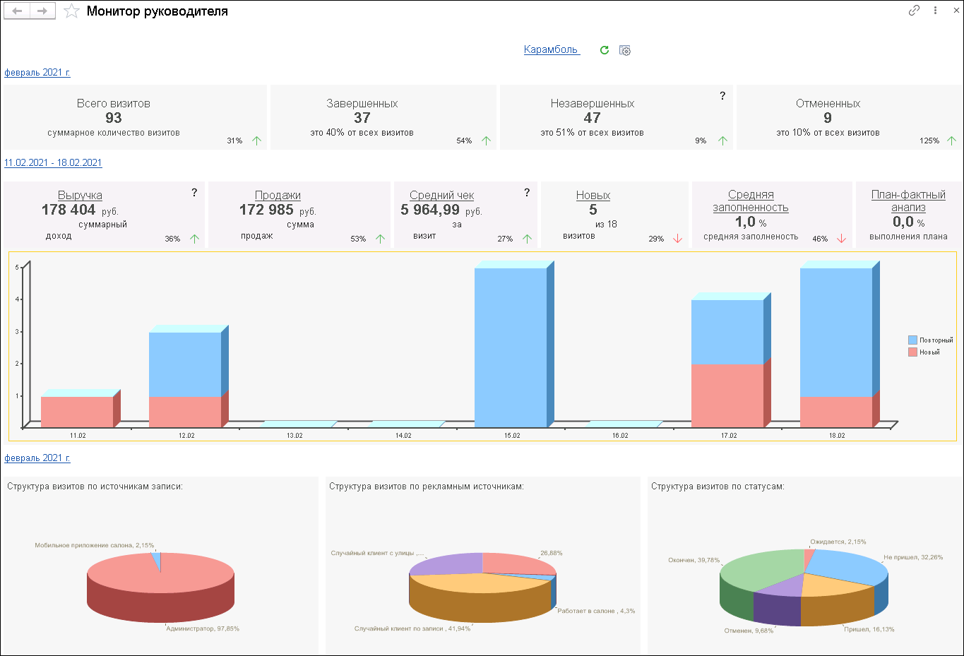 - Программа 1С: SPA-Салон располагает мощным механизмом анализа всех направлений деятельности: