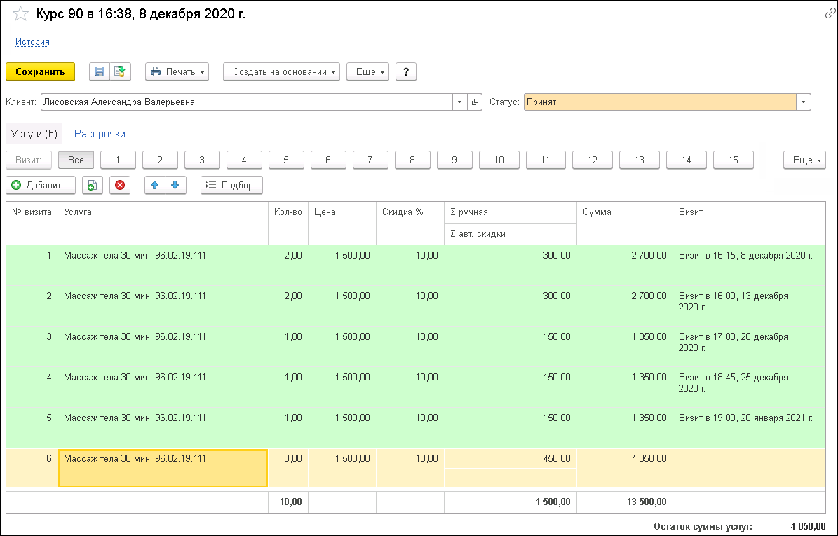 В «1С: SPA-Салон 8» реализованы следующие функции: