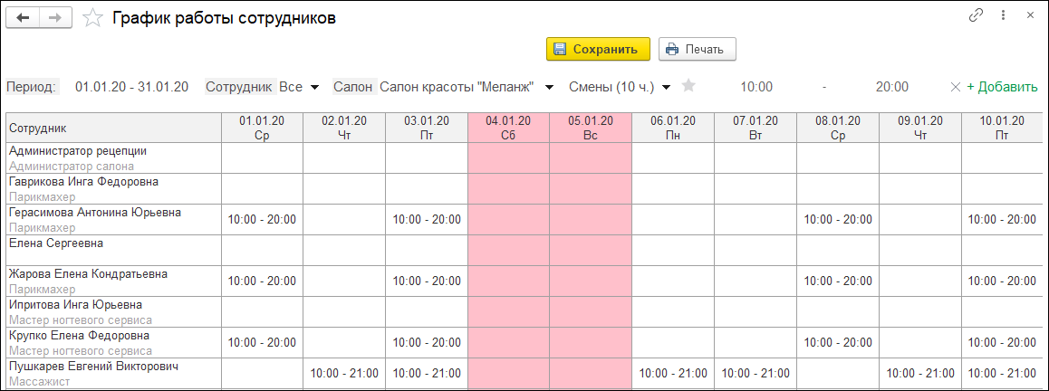 - распределение нагрузки между сотрудниками (удобство составления/редактирования графика работы, контроль занятости);
