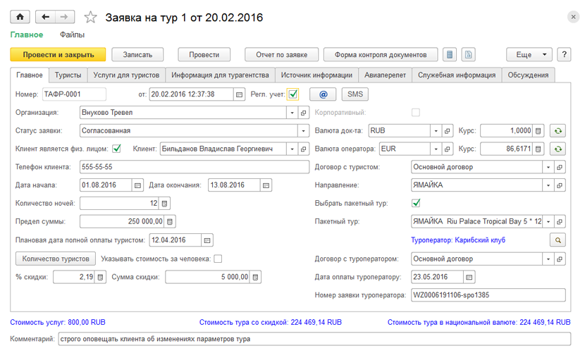 - ведется учет взаиморасчета с туристами и туроператорами;