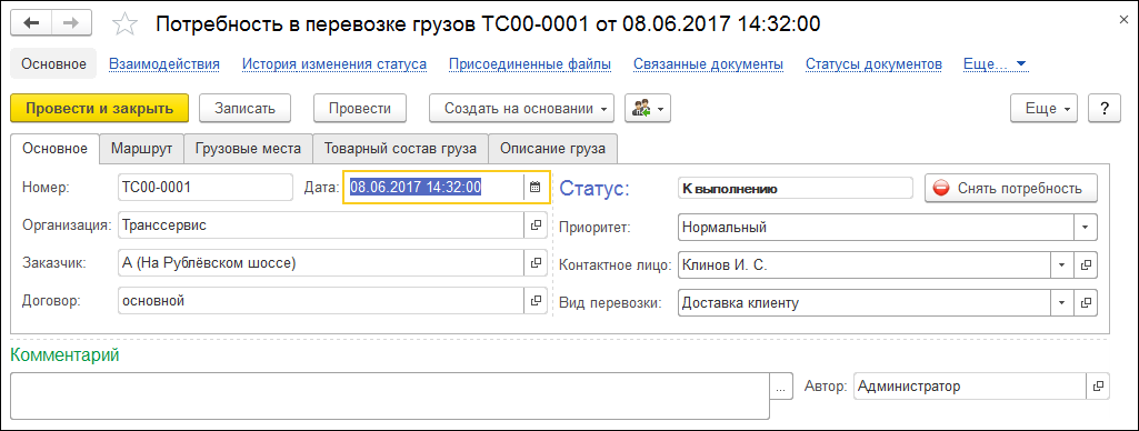 - возможность использования бизнес-процесса “Согласование подтверждения Заявки на ТС”.