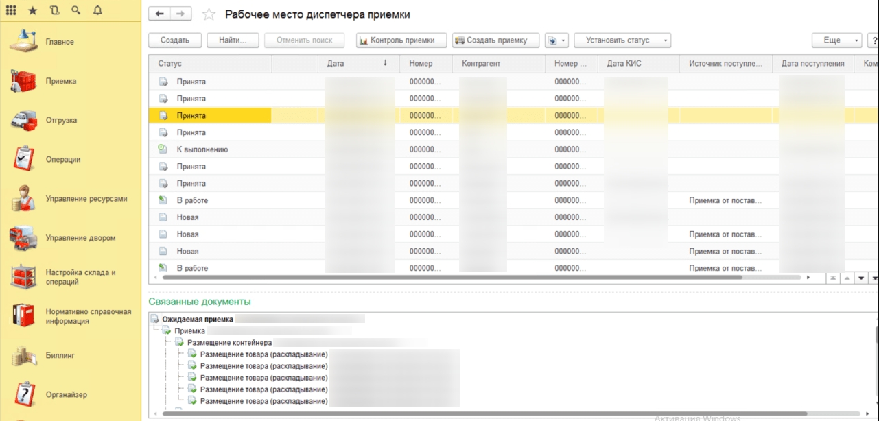 Принятый на склад товар может быть еще раз проконтролирован и пересчитан в 1С с помощью задачи «Контроль приемки». Контрольный пересчет может проводиться для проверки соответствия принятого товара по количеству, а также для уточнения дополнительных параметров товара. Так, например, в зоне приемки у ворот товар может быть пересчитан только по количеству, а уже на этапе контроля приемки в программе детализируется его дополнительные параметры, такие как срок годности, серийные номера. После приемки товар подлежит размещению.